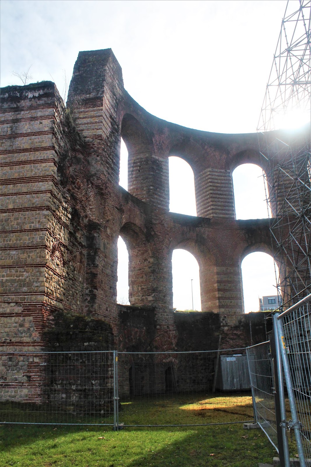 of the city was the Porta Nigra, the black gate. Construction started in 170 AD. I climbed up into it. Imagine 2,188 years old. I touched it.